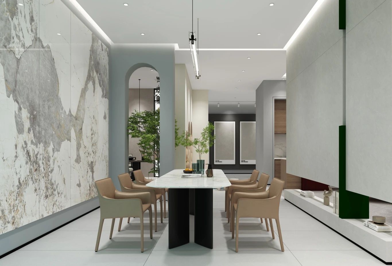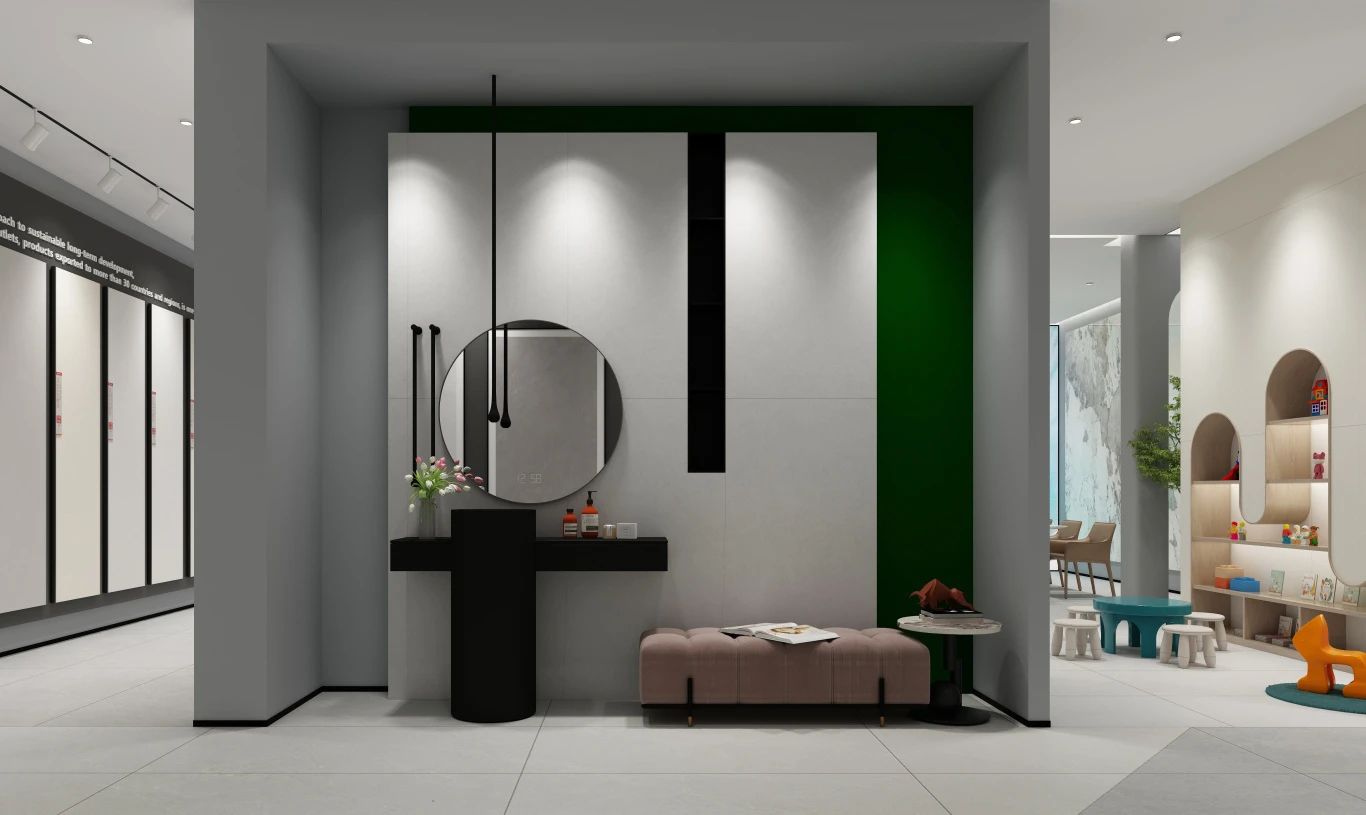 德田陶瓷有著二十余載的歲月沉淀,將歷史底蘊(yùn)結(jié)合現(xiàn)代新中式趨勢,運(yùn)用于SI形象展廳設(shè)計(jì)中,不僅展現(xiàn)了老品牌獨(dú)具匠心、嚴(yán)謹(jǐn)細(xì)致的品牌精神,也為展廳空間注入更多時(shí)尚化年輕化藝術(shù)化的美感,奠定品牌未來發(fā)展基調(diào),滿足新時(shí)代人類的消費(fèi)需求。